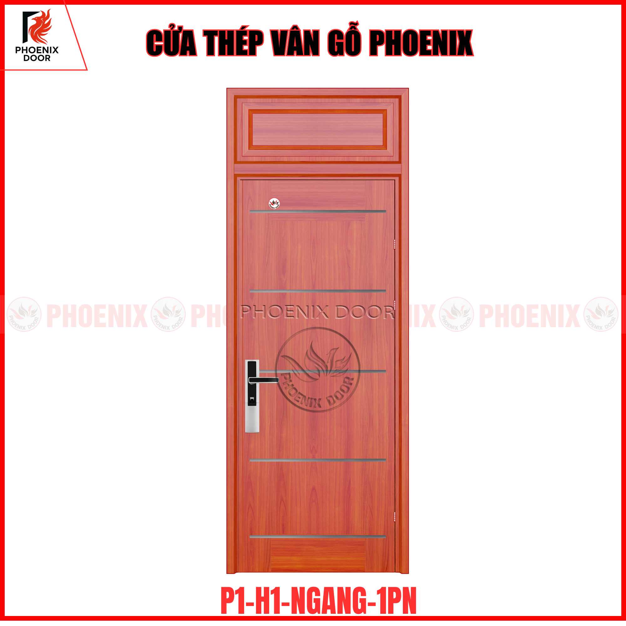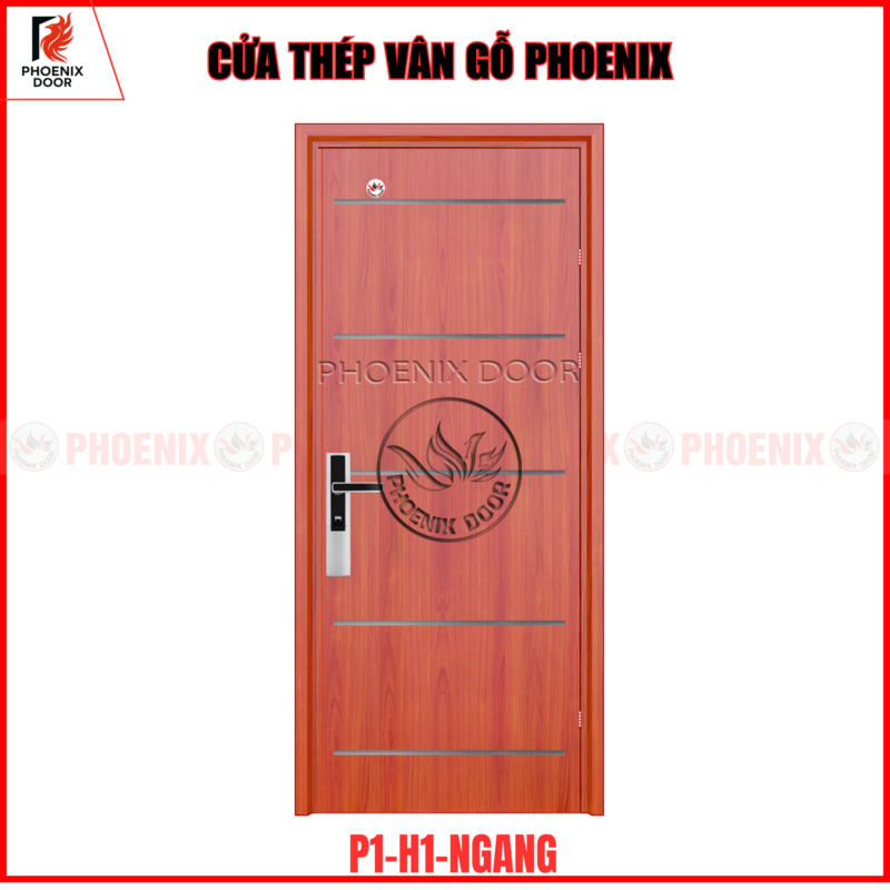 Cửa thép vân gỗ phoenix là loại cửa được cấu tạo từ thép mạ cao cấp, bề mặt được phủ sơn tĩnh điện và xử lý vân gỗ công nghệ cao. Nhờ đó, cửa mang vẻ đẹp sang trọng như gỗ tự nhiên nhưng vẫn giữ được độ bền chắc, an toàn của thép.